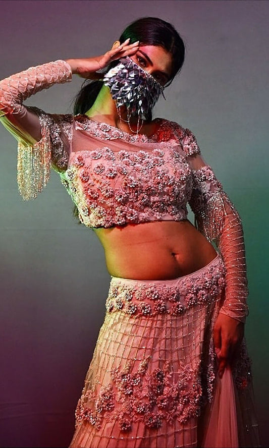 Peach 3d flower lahenga