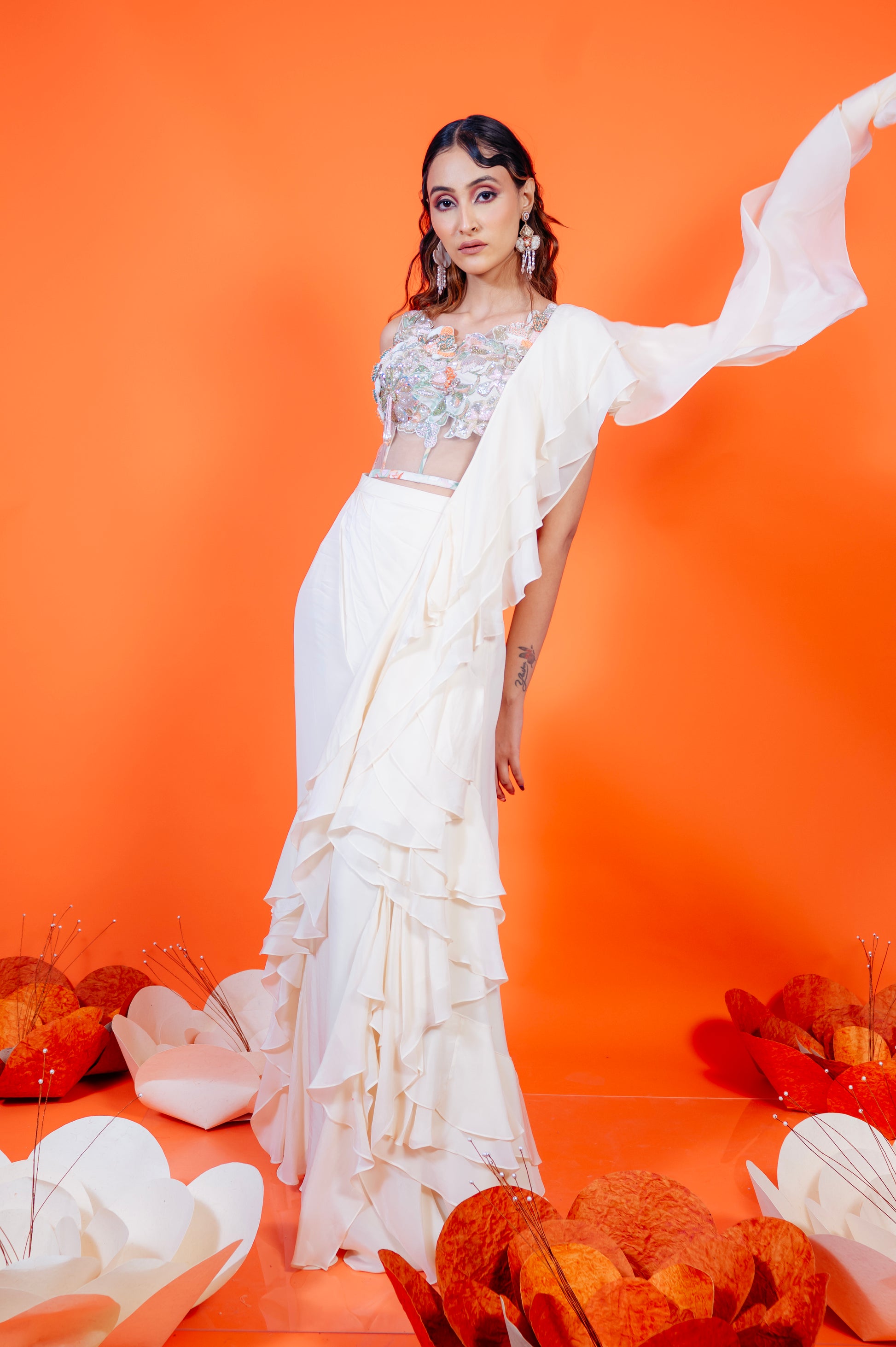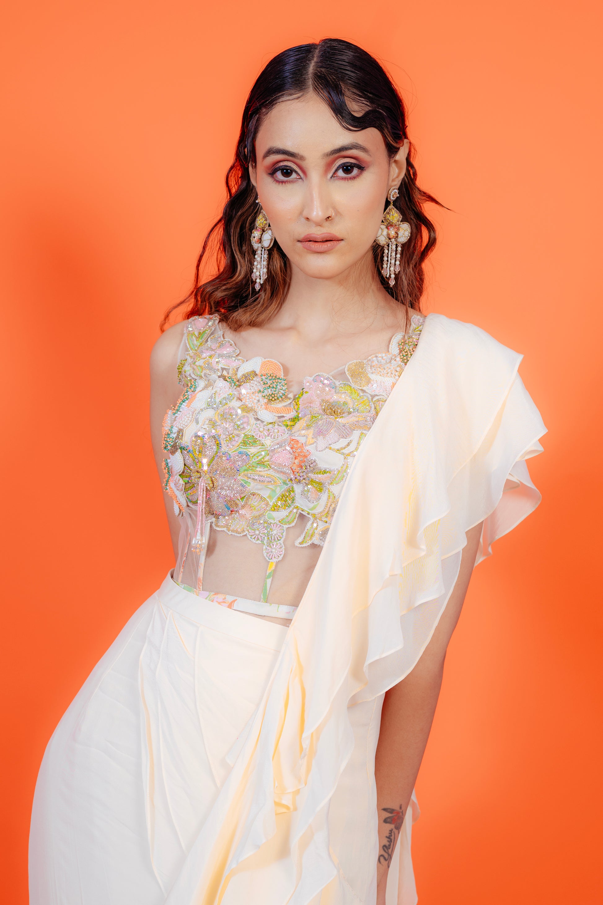 The Flora Finesse Lehenga is a sophisticated choice crafted from luxurious silk, chiffon, or satin. It features delicate floral embroidery or prints in soft pastels or vibrant hues, offering a romantic and graceful appearance. With options ranging from traditional voluminous skirts to modern silhouettes, and often enhanced with intricate beadwork or sequins, this lehenga is ideal for weddings and elegant events.